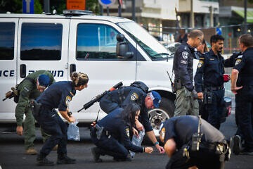 Image: Security personnel at the scene of a drone attack in Tel Aviv, July 19, 2024. Photo by Avshalom Sassoni/Flash90.