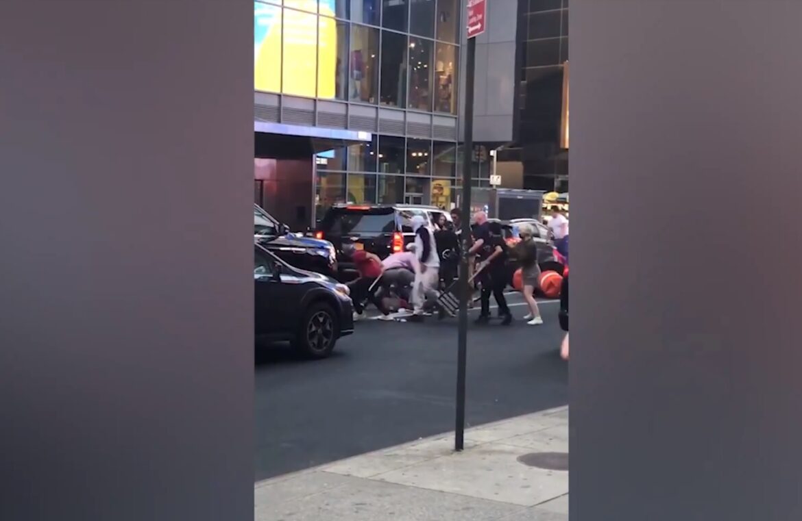 Image: The on-camera anti-Semitic assault of Joseph Borgen in Times Square, N.Y., on May 21, 2021. Source: Screenshot.