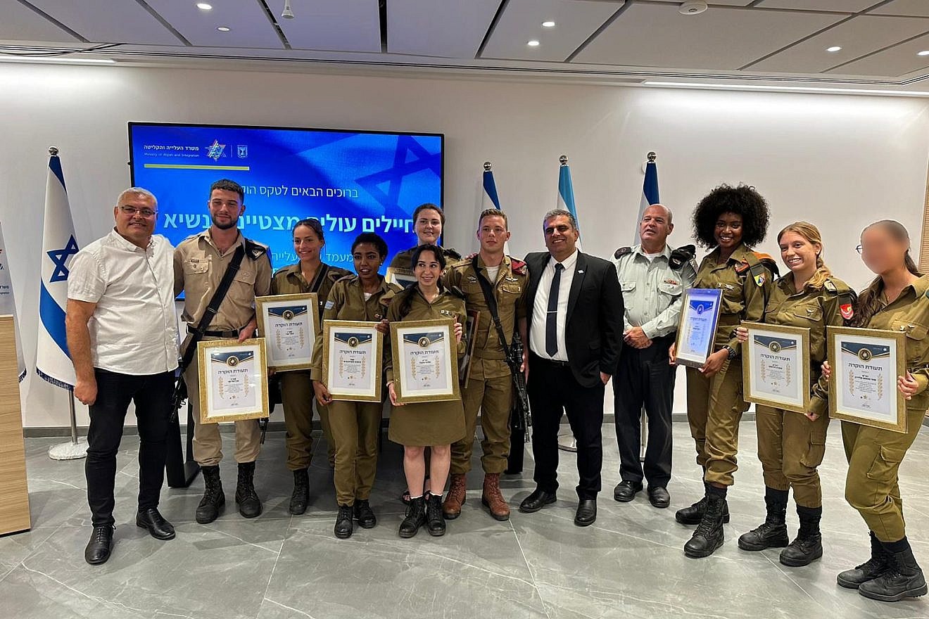 The soldiers were presented with a framed certificate of appreciation and a special gift at the event, which was organized by Lt. Col. Oded Nahari, commander of the IDF Ceremonies and Events Unit, and the Aliyah and Integration Ministry.