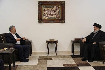 Hamas deputy politburo head Saleh al-Arouri and PIJ secretary general Ziyad al-Nakhala joined the secretary general of the Iran-backed Lebanese terror group to discuss “the latest political developments, especially with regard to the Palestinians,” according to a joint statement.
